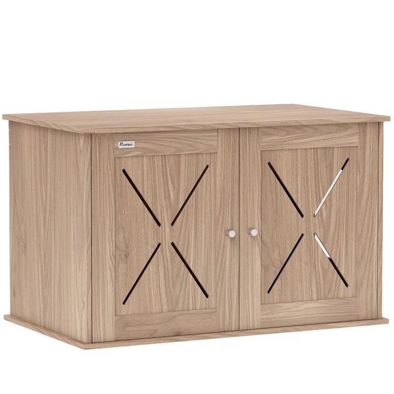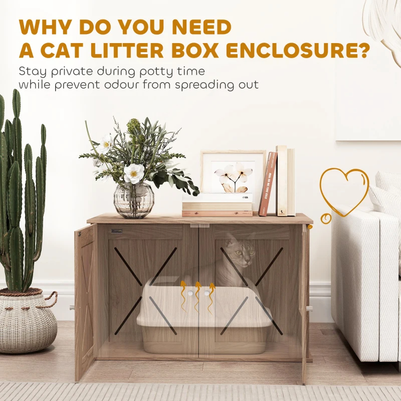 • - Concealed and Ventilated: The litter box cabinet maintains a tidy appearance with a front door equipped with four ventilation holes to enhance airflow. The enclosed design provides your cat with privacy while using the litter box.